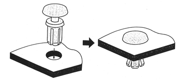 パネルを取り付ける樹脂リベット。